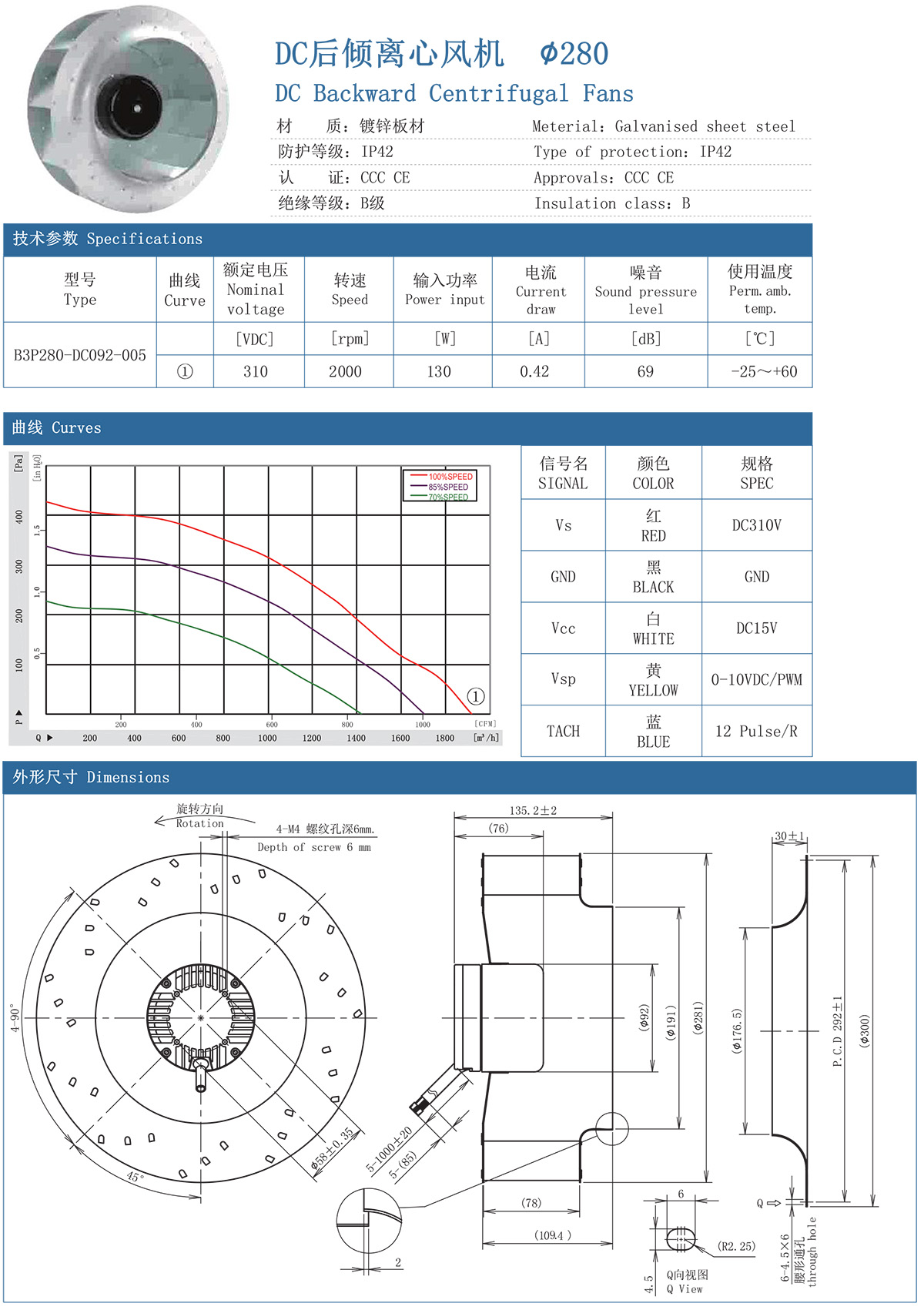 DC后倾离心风机 280