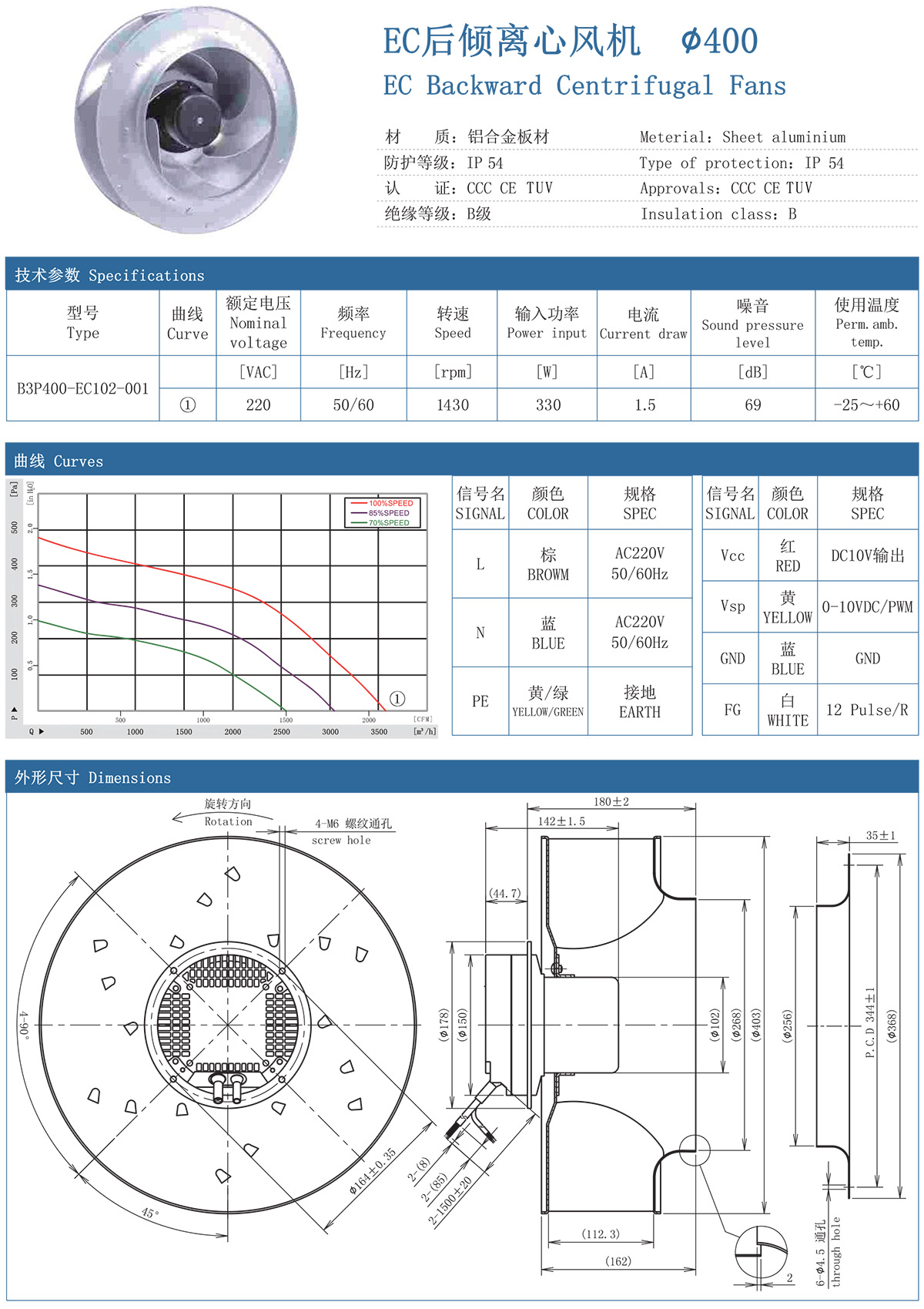 EC后倾离心风机 400