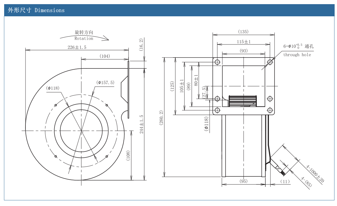 DC前倾单进风风机 140