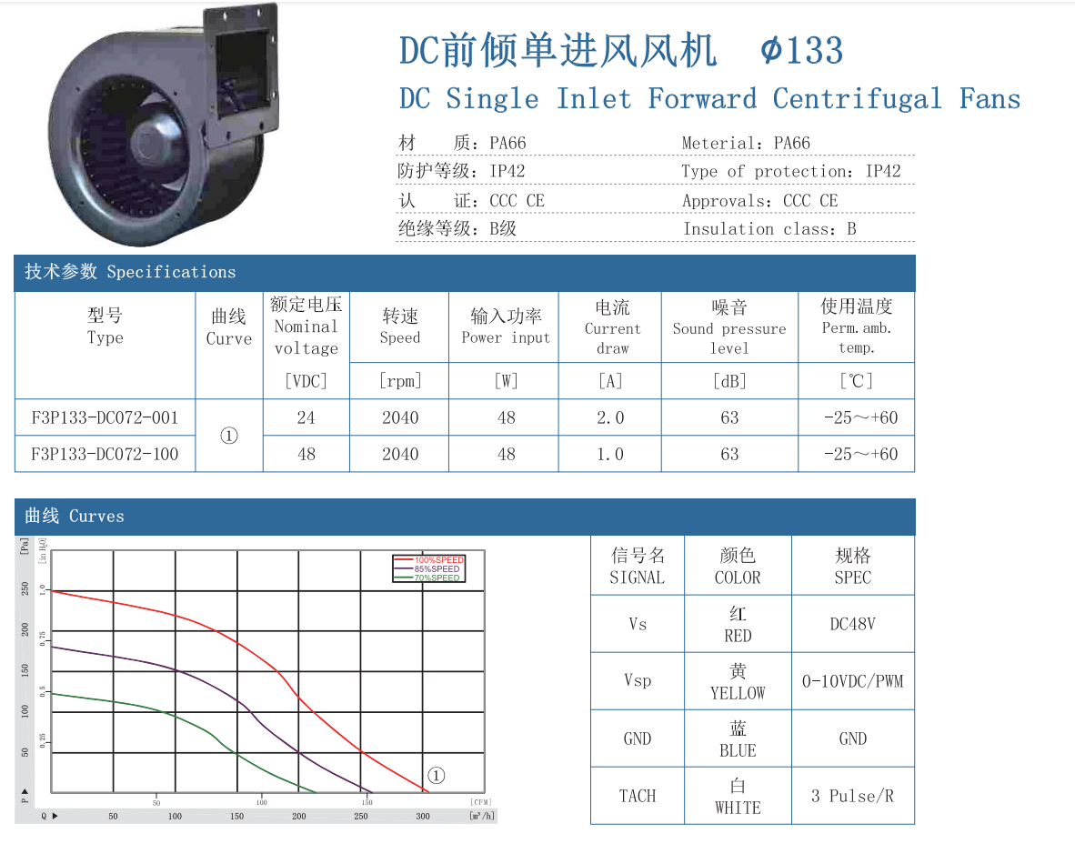 DC前倾单进风风机 133