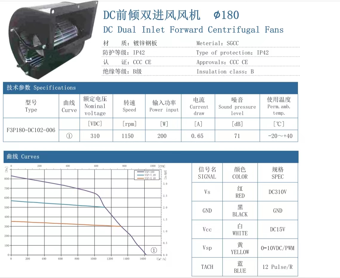 DC前倾双进风风机 180