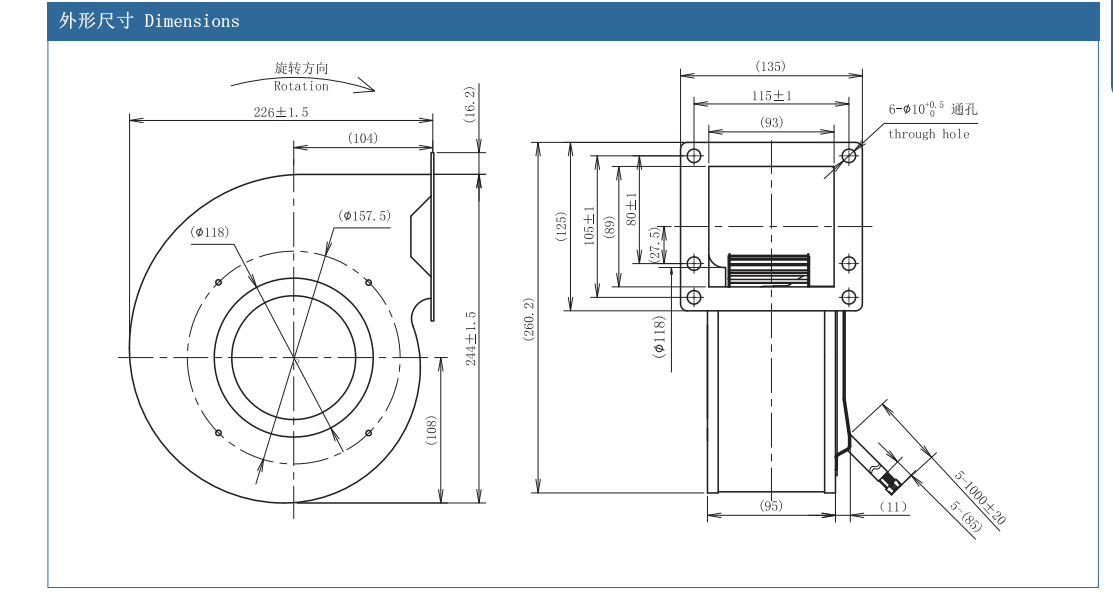 DC前倾单进风风机 140