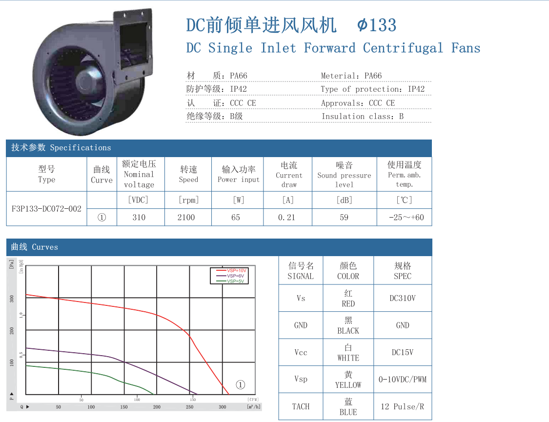 DC前倾单进风风机 133