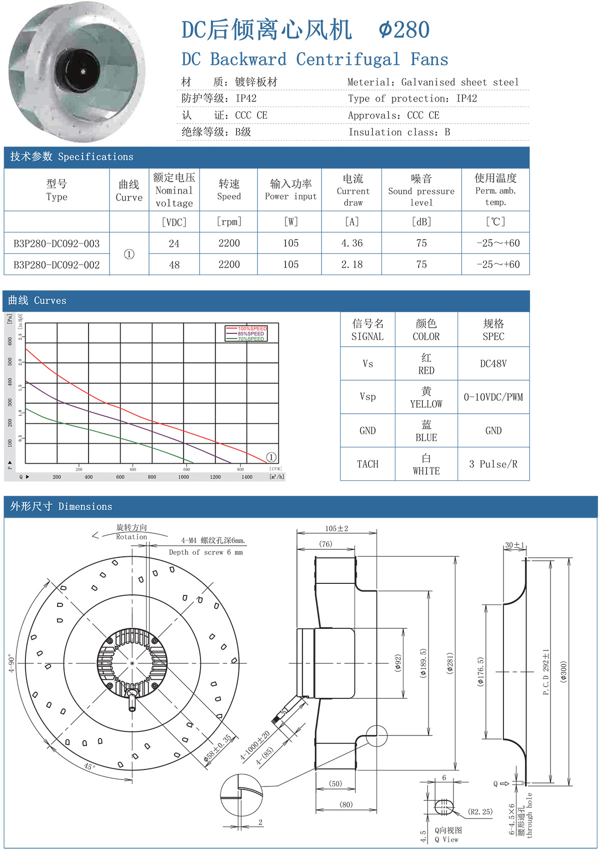 DC后倾离心风机 280