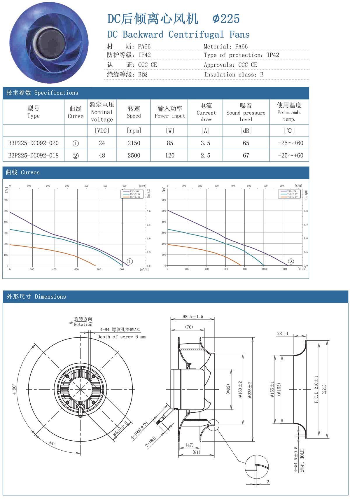 DC后倾离心风机 225